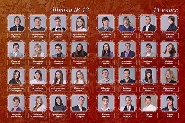 5-25 разворотов с портретами для каждого выпускника